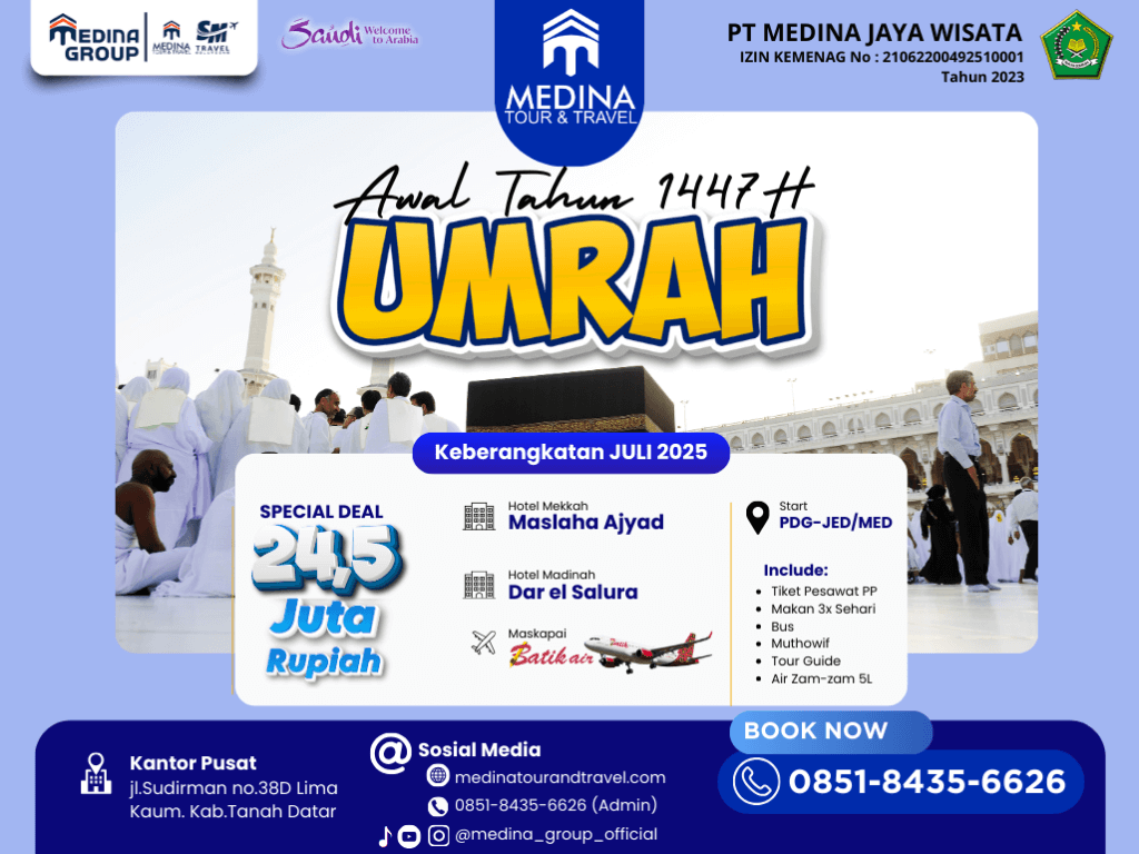 - Pembatalan 4 Minggu sebelum keberangkatan 25% dari Harga Umrah