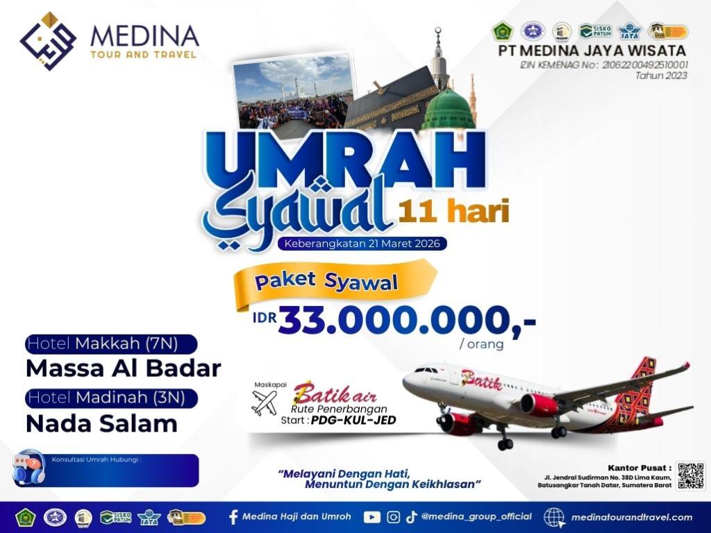 - Pembatalan 4 Minggu sebelum keberangkatan 25% dari Harga Umrah